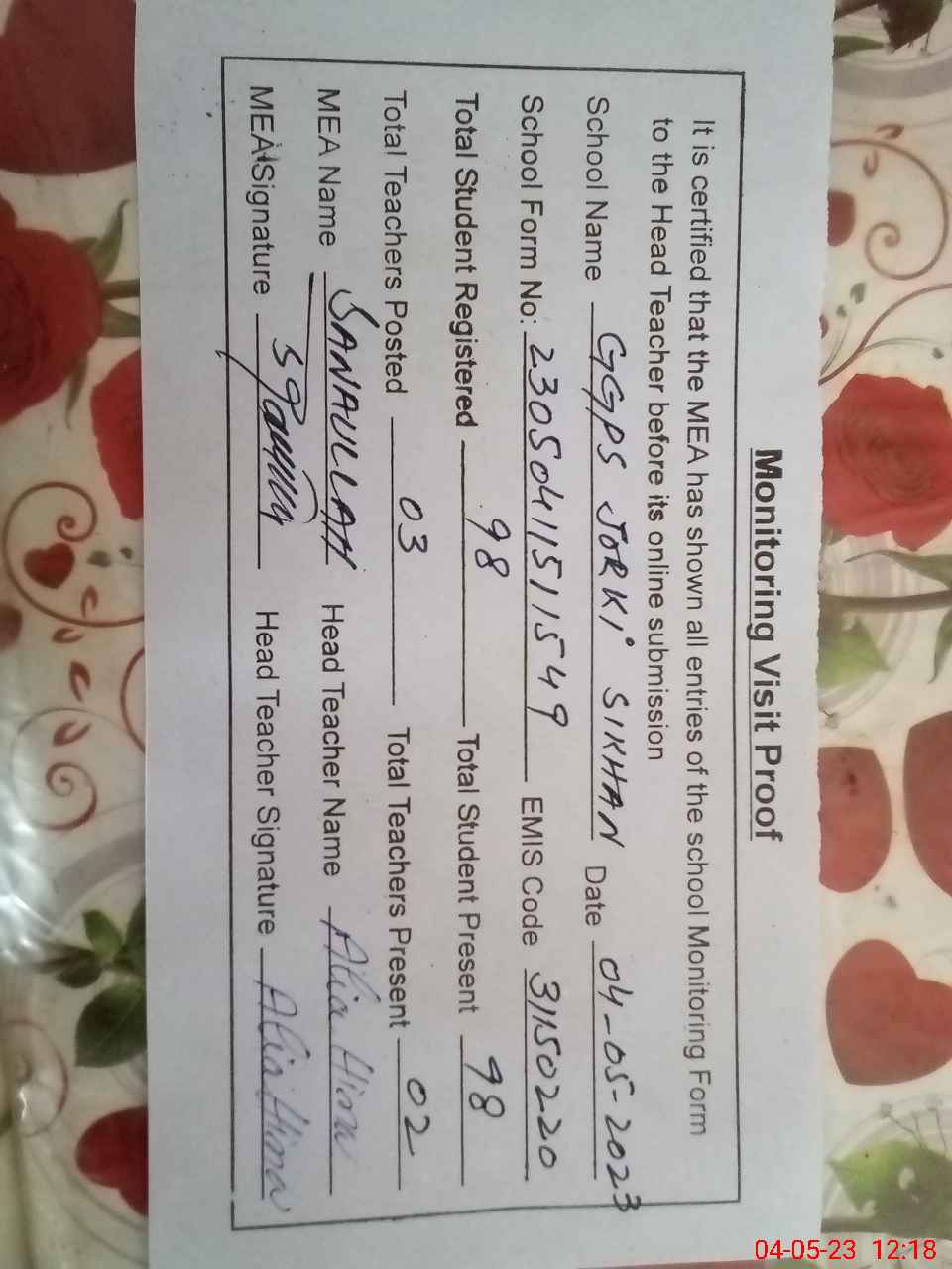 | EMIS Code: 31150220 | Name of School: GGPS JORRI SIKKHON | |||