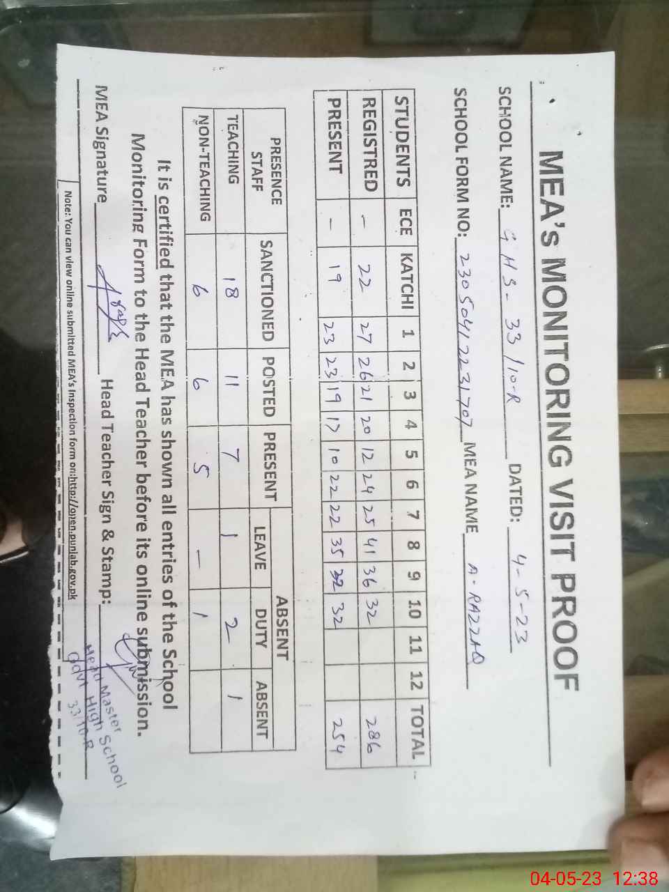 | EMIS Code: 36420026 | Name of School: GHS 33/10-R, KACHA KHUH | |||