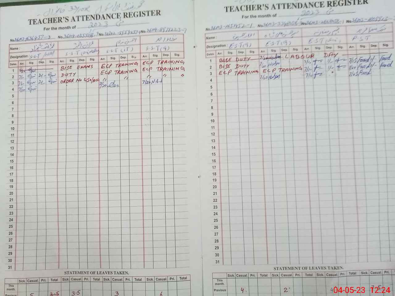 | Leave | Duty | Absent | Maternity | Medical | Ex- Pak |