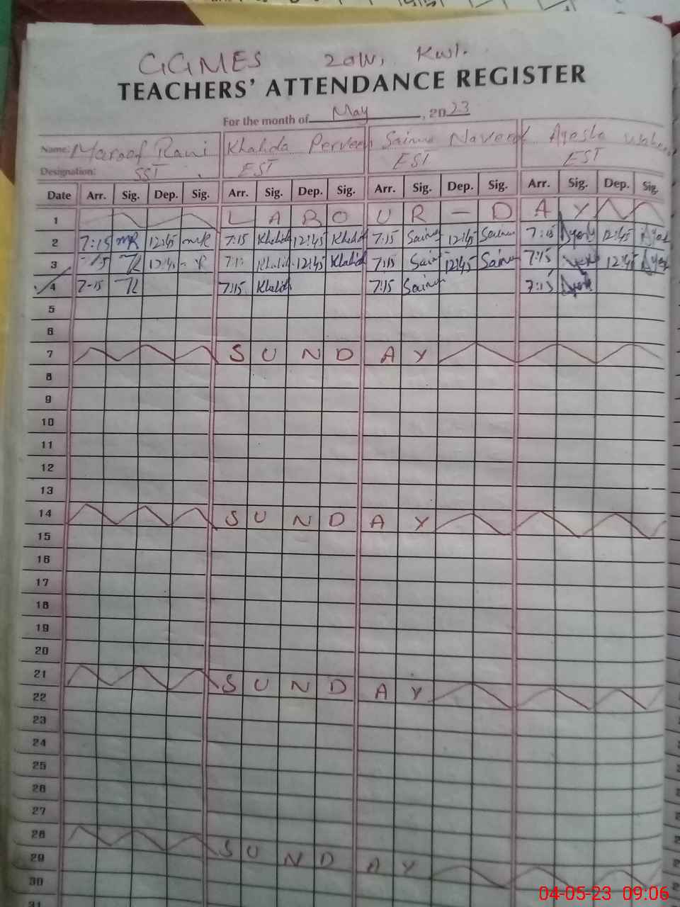 | 36**** | Sa**** Re**** | EST | Regular | 0 | 0 | 0 | 0 | 0 | 0 | 0 | 0 | 0 | Exam Duty |