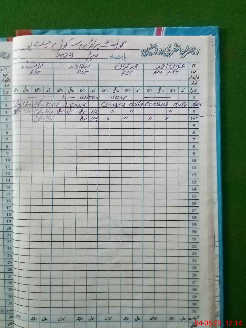 | Name: IR**** AH**** Designation: (School Headmaster's/Headmistress's) PST Phone/Cell Number: 03**** |