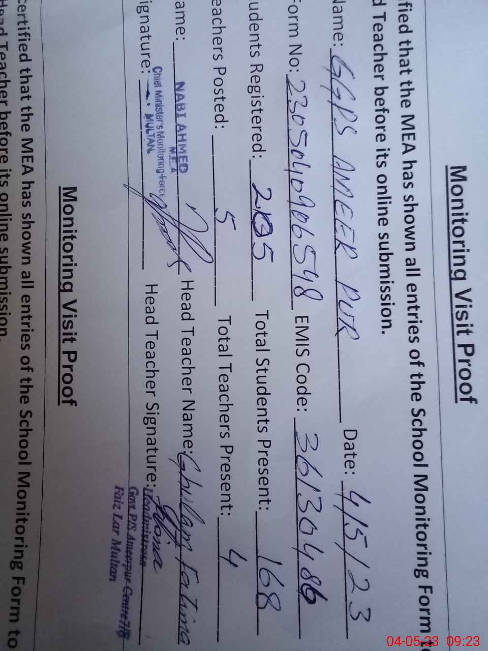 | EMIS Code: 36130486 | Name of School: GGPS AMEER PUR | |||