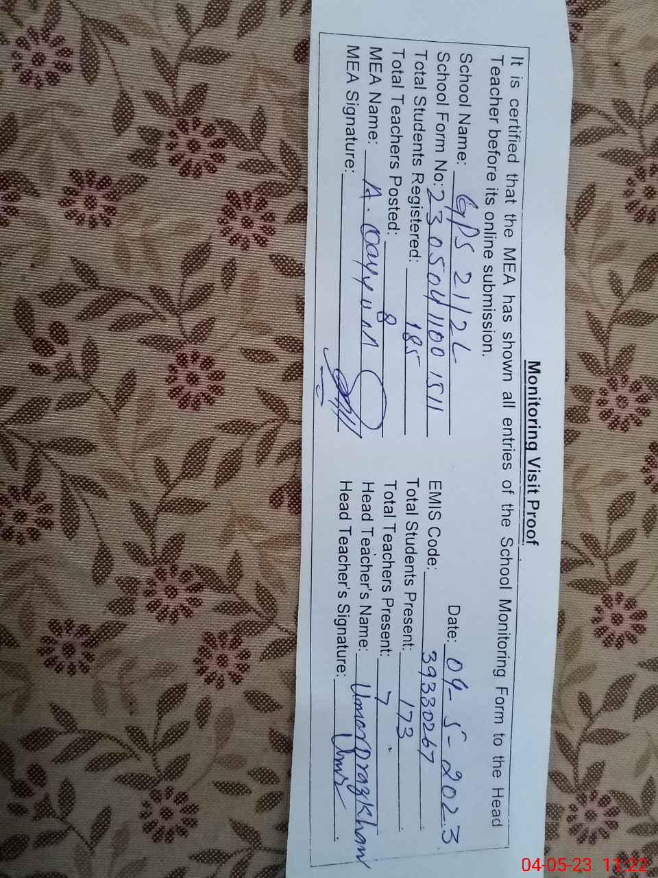 | EMIS Code: 39330267 | Name of School: GPS CHAK 21 2L | |||
