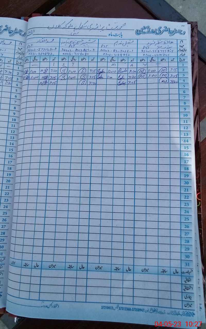 | Name: Mu**** Ah**** Designation: (School Headmaster's/Headmistress's) PST Phone/Cell Number: 03**** |