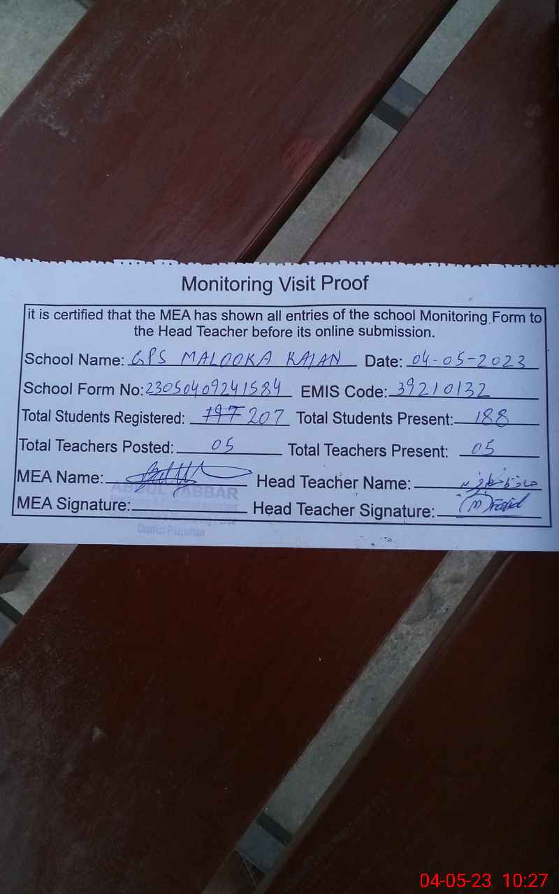 | EMIS Code: 39210132 | Name of School: GPS MALOOKA KALAN | |||