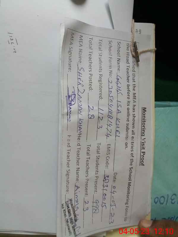| EMIS Code: 38310015 | Name of School: GGHS ISA KHEL | |||
