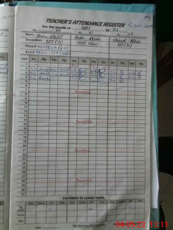 | Name: Ai**** Kh**** Ha**** Designation: (School Headmaster's/Headmistress's) Sst Phone/Cell Number: 03**** |