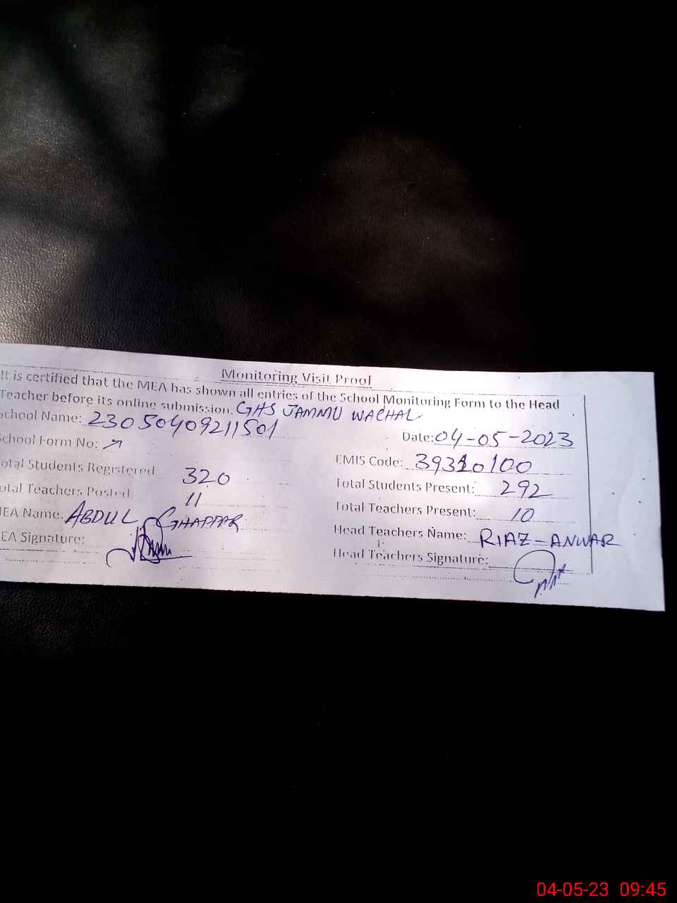 | Name: Ri**** An**** Designation: (School Headmaster's/Headmistress's) HEADMASTER Phone/Cell Number: 03**** |