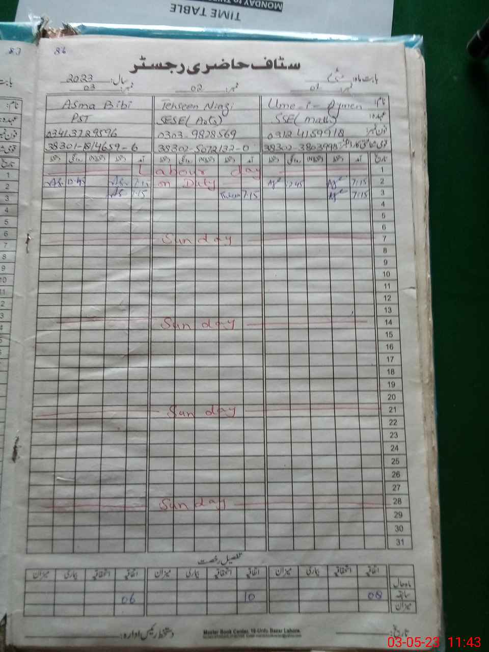 | CNIC | Full Name | Designation | R/C | Absence During Last Calender Month |