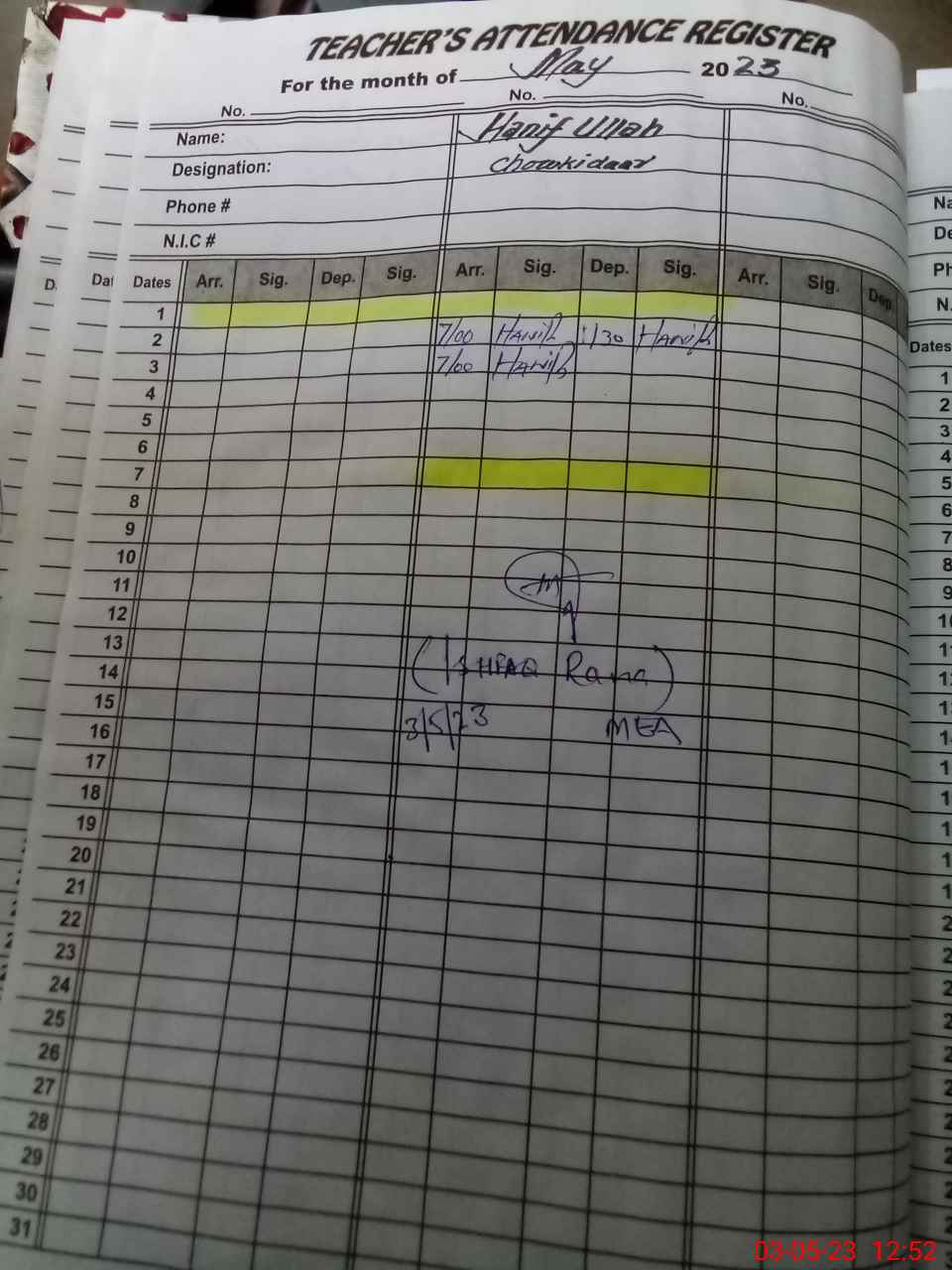 | Name: MU**** IS**** KH**** Designation: (School Headmaster's/Headmistress's) S.S.T.(GEN) Phone/Cell Number: 03**** |