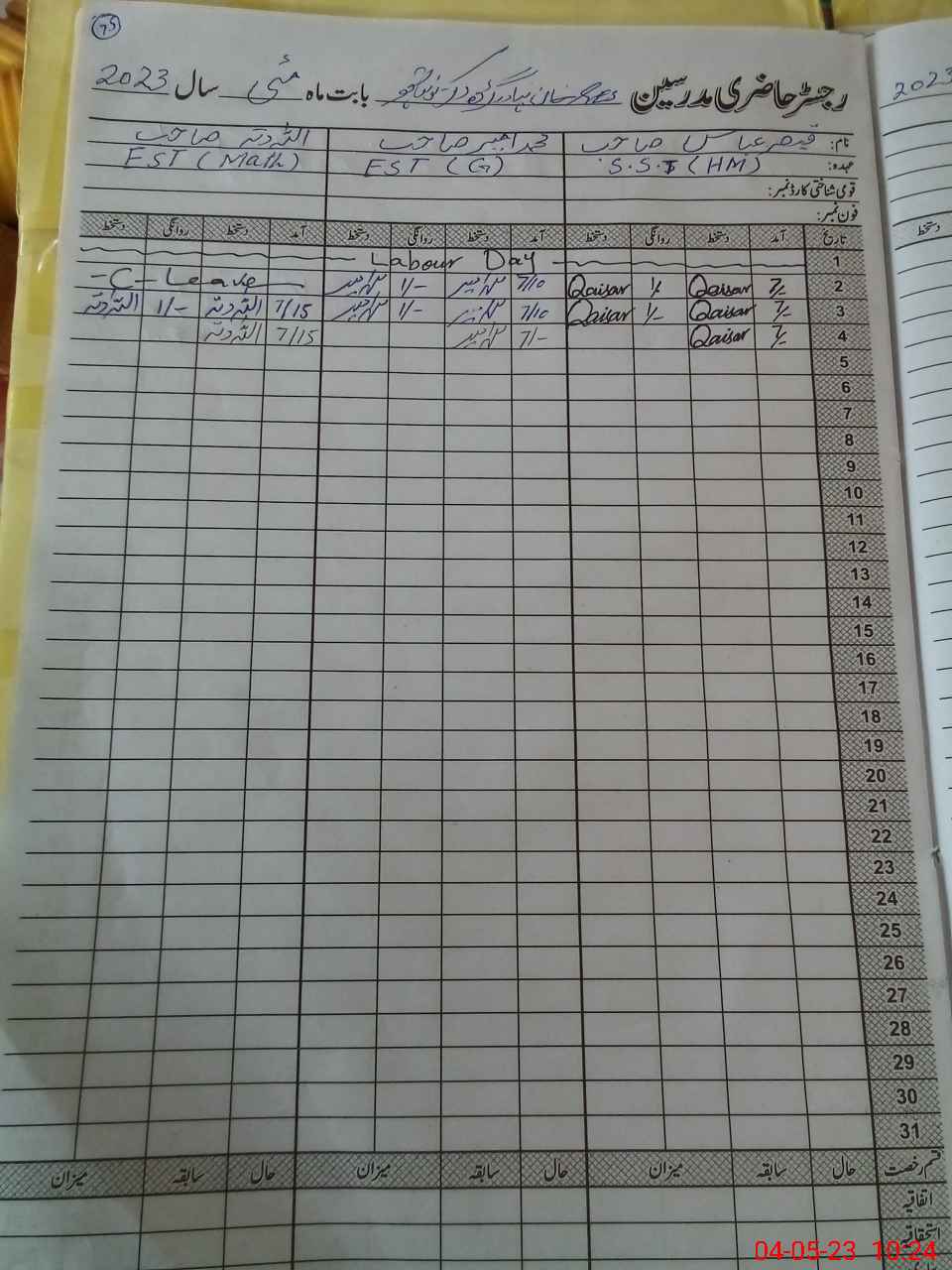 | CNIC | Full Name | Designation | R/C | Absence During Last Calender Month |