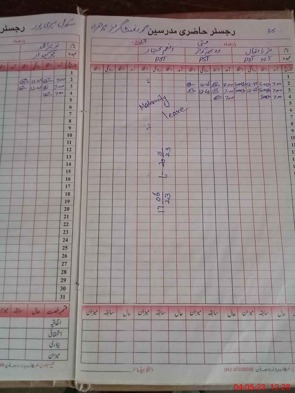 | 36**** | An**** Ba**** | PST | Regular | 30 | 0 | 0 | 30 | 0 | 0 | 0 | 0 | 0 | Maternity |