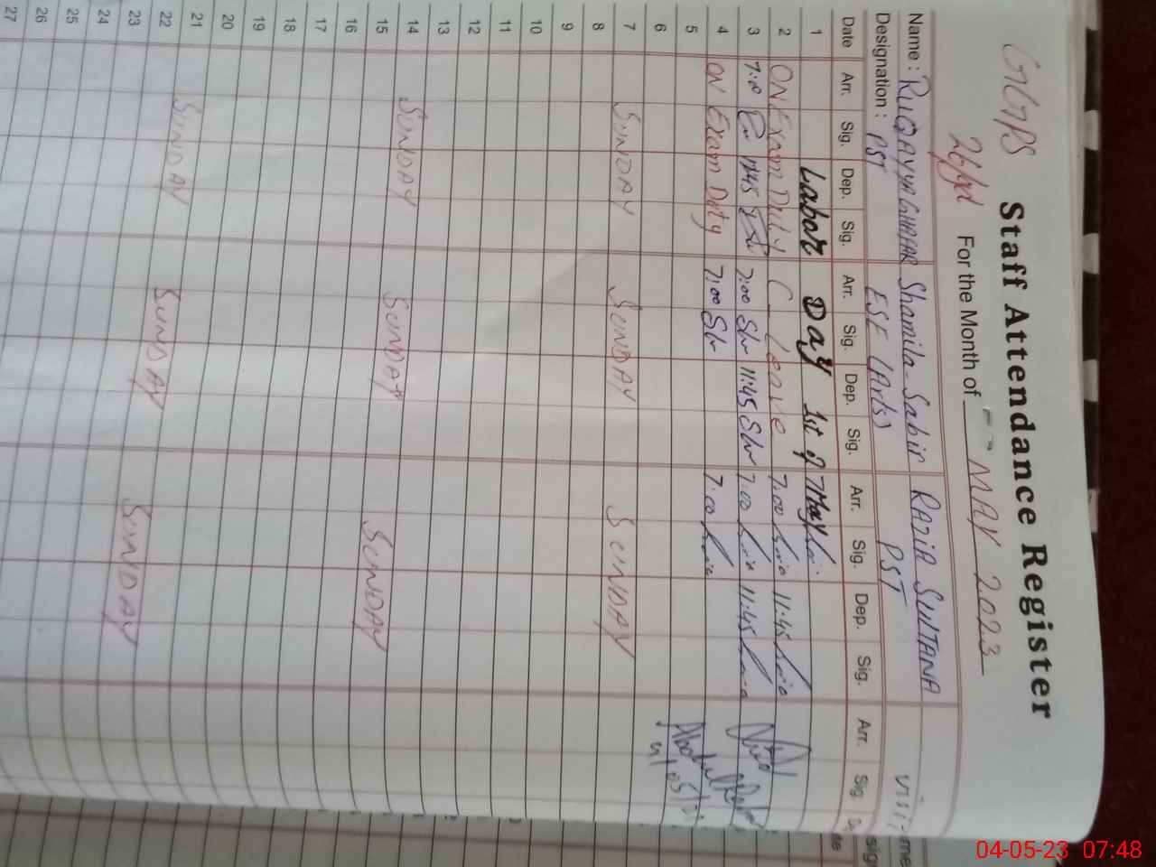 | 35**** | Ru**** Gh**** | ESE | Contract | 0 | 0 | 0 | 0 | 0 | 0 | 0 | 0 | 0 | Exam Duty |