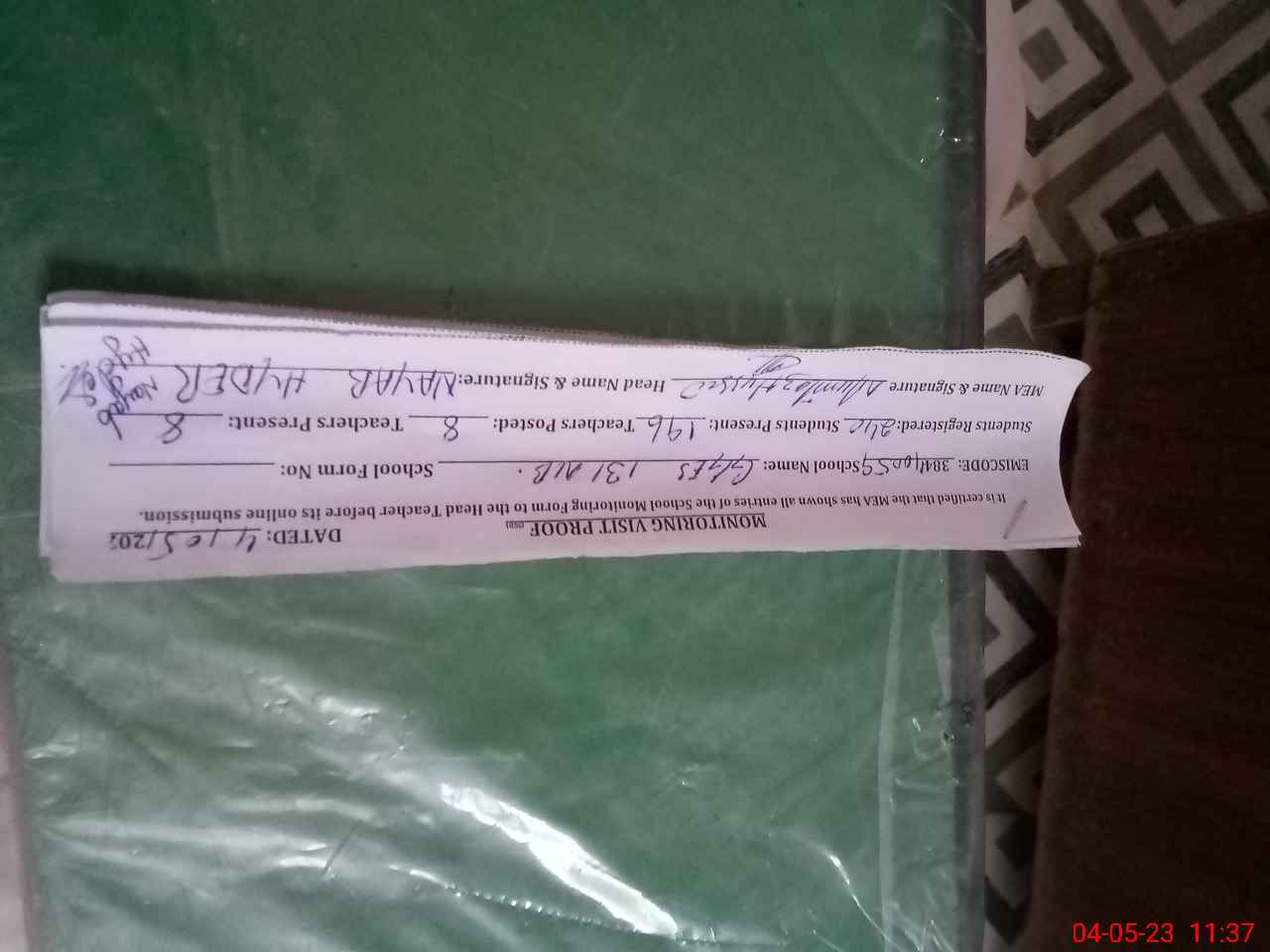 | Attendance Register | Head Teacher | MEA with School | Visit Proof |