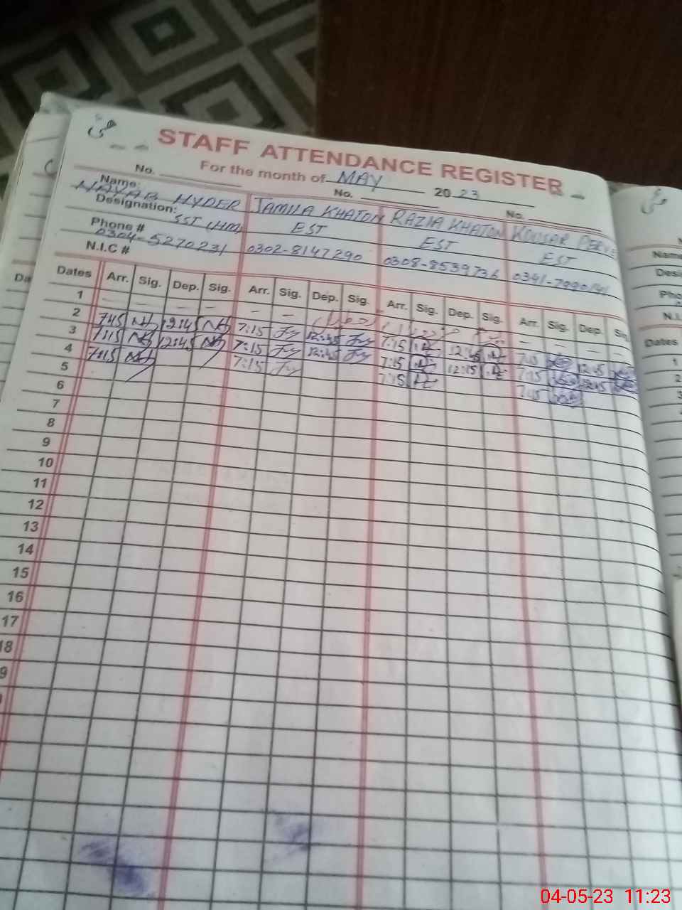 | CNIC | Full Name | Designation | R/C | Absence During Last Calender Month |