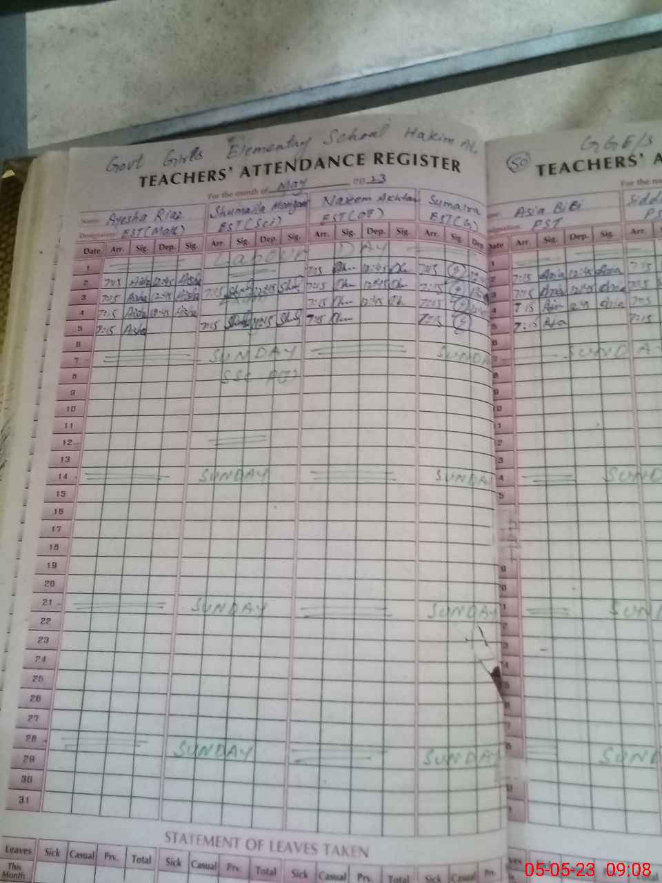 | Name: AY**** RI**** Designation: (School Headmaster's/Headmistress's) EST (Math ) Phone/Cell Number: 03**** |