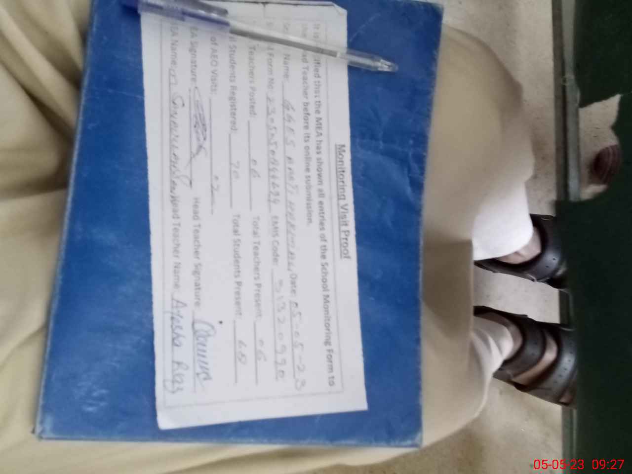 | Monitoring Date: 05-05-2023 | Start Time: 05-05-2023 08:44 AM | End Time: 05-05-2023 09:27 AM | Name of MEA: Mu**** Sa**** Ul**** Sa**** | |