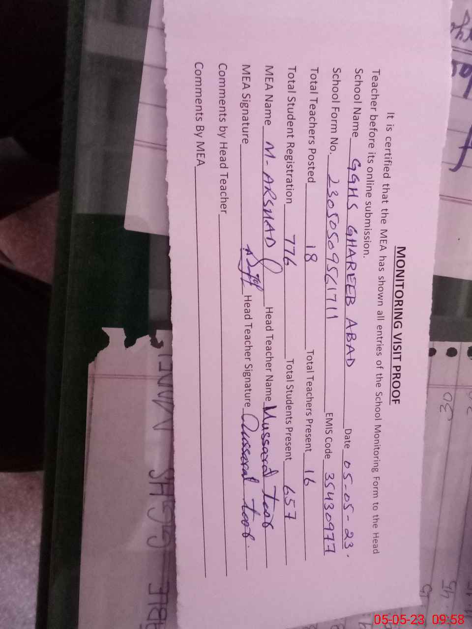 | EMIS Code: 35430977 | Name of School: GGHS MODEL GHAREEB ABAD | |||