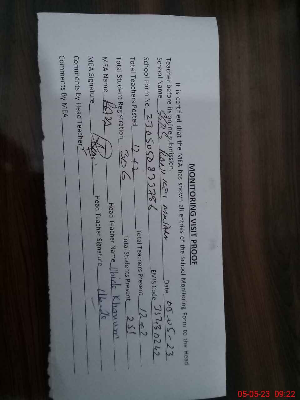 | Certified that this School was Inspected by the Undersigned MEA/DMO Today and the Information Stated Above is as Per Record. | |||||