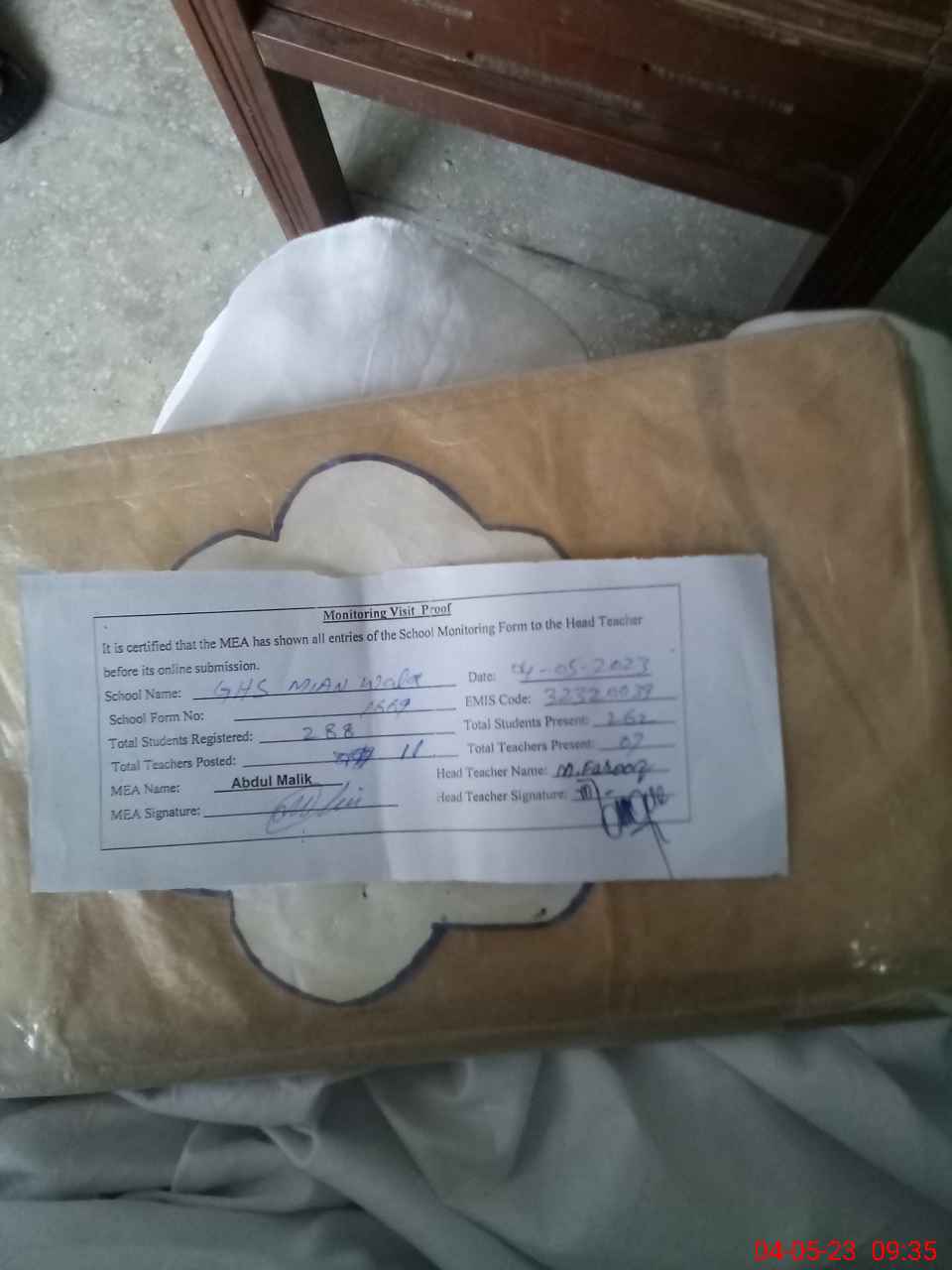 | Attendance Register | Head Teacher | MEA with School | Visit Proof |