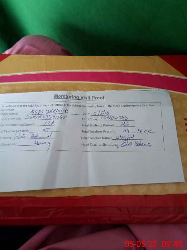 | Certified that this School was Inspected by the Undersigned MEA/DMO Today and the Information Stated Above is as Per Record. | |||||