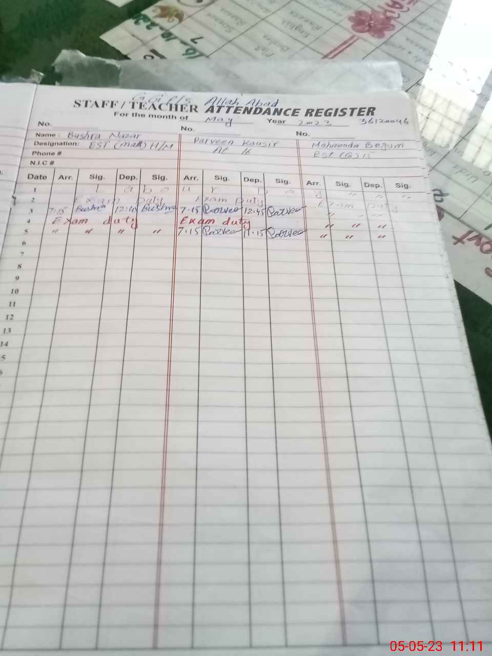 | Name: Uz**** Iq**** Designation: (School Headmaster's/Headmistress's) SST Phone/Cell Number: 03**** |