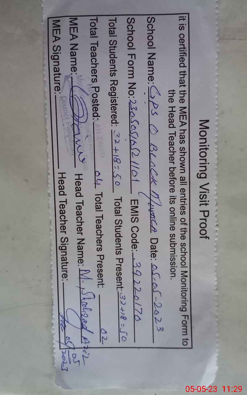 | EMIS Code: 39220170 | Name of School: GPS O BLOCK ARIFWALA | |||