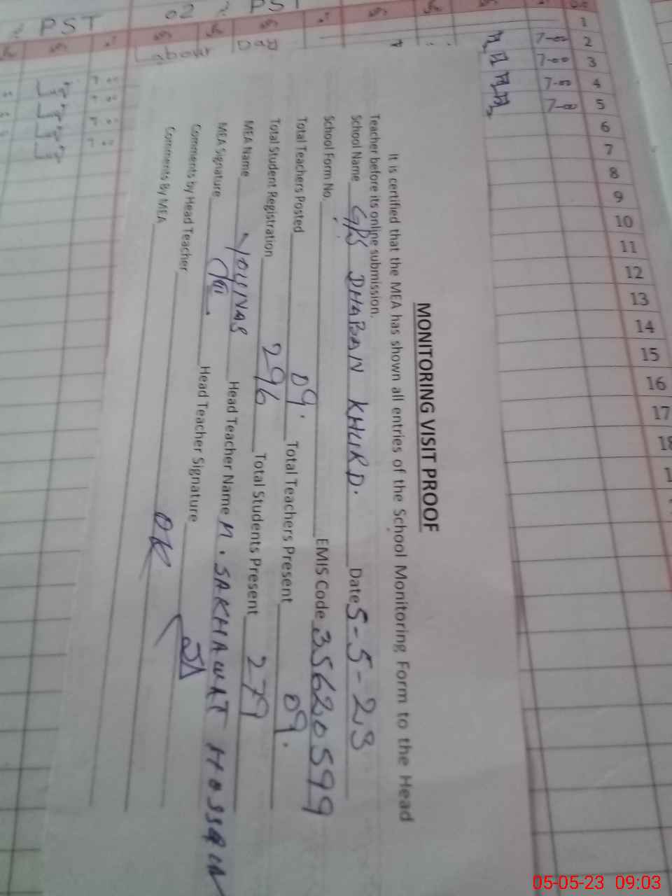 | EMIS Code: 35620599 | Name of School: GPS DHABAN KHURD CHAK NO. 13/RB | |||