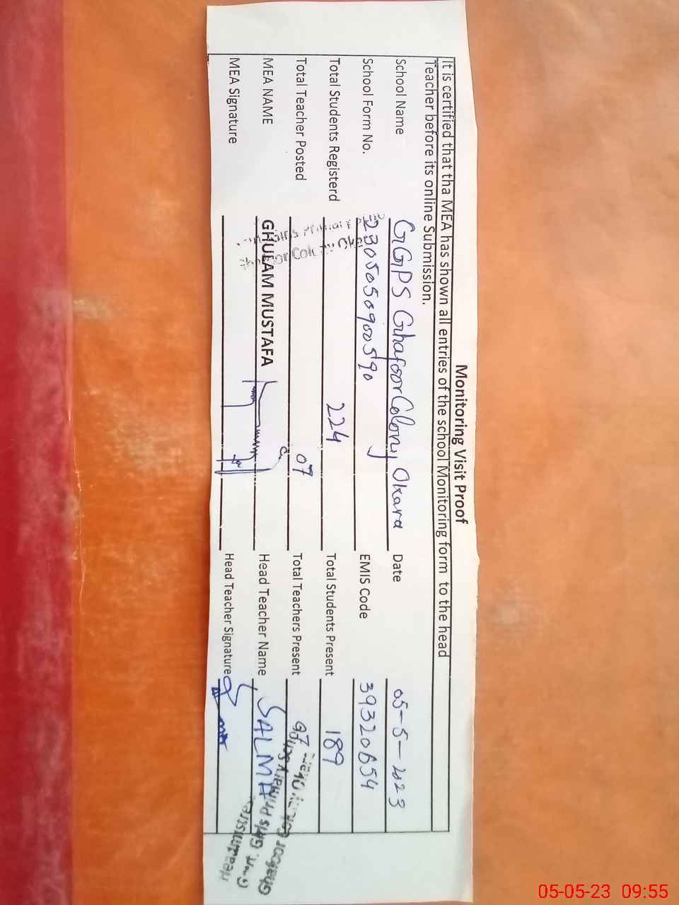 | EMIS Code: 39320654 | Name of School: GGPS GHAFOOR COLONY OKARA | |||