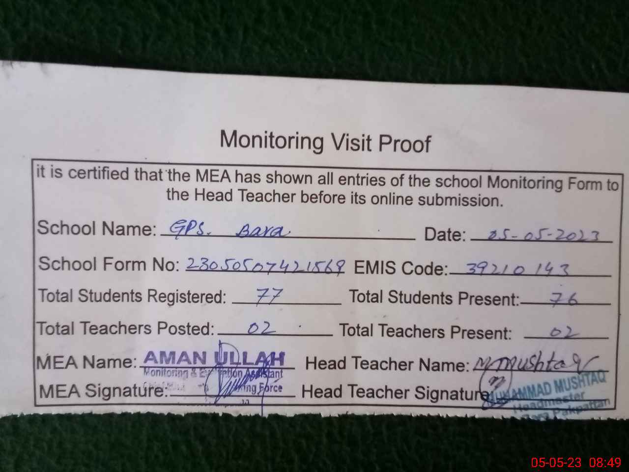 | EMIS Code: 39210143 | Name of School: GPS BARA | |||