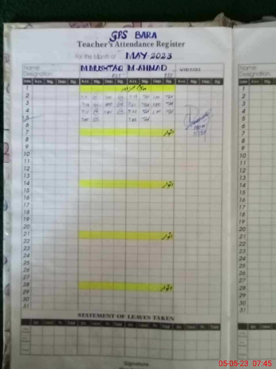 | Name: MU**** MU**** Designation: (School Headmaster's/Headmistress's) PST Phone/Cell Number: 03**** |