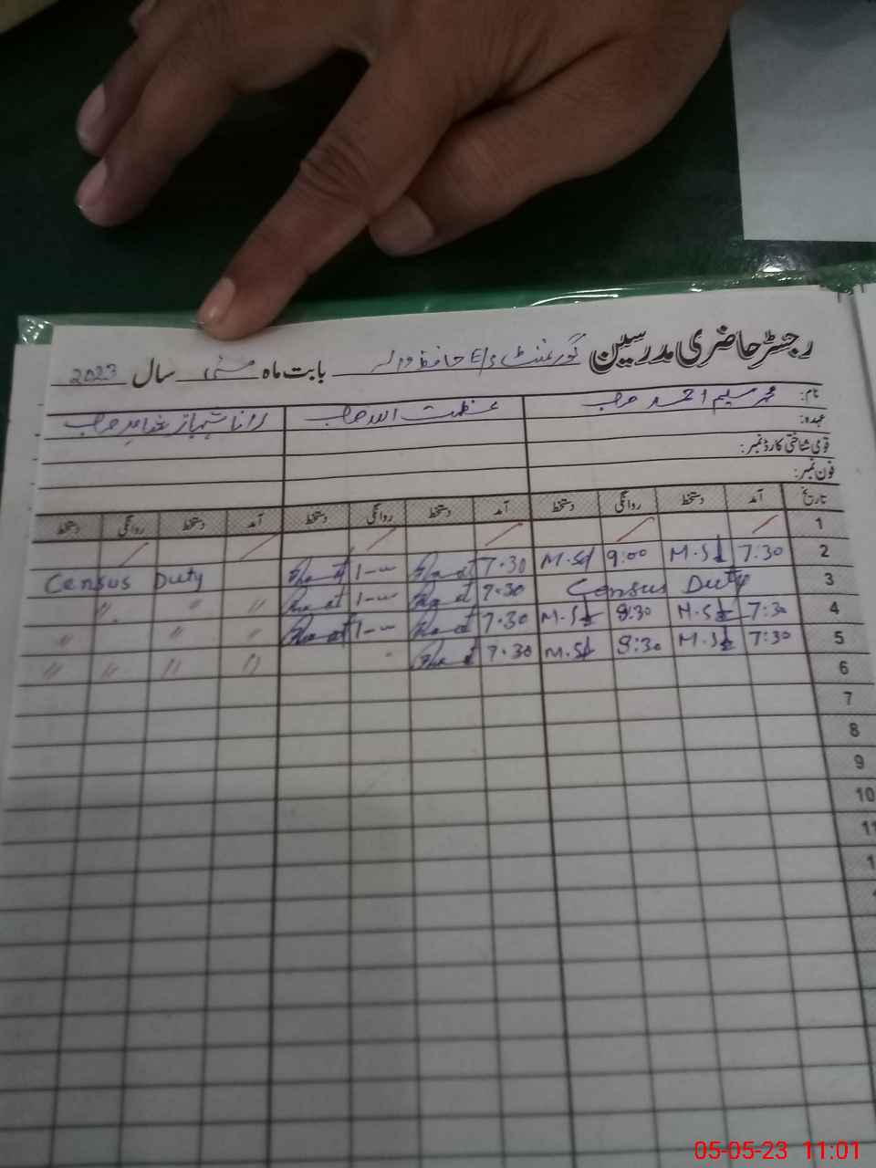 | Name: MU**** Sa**** Designation: (School Headmaster's/Headmistress's) S.S.E Phone/Cell Number: 03**** |
