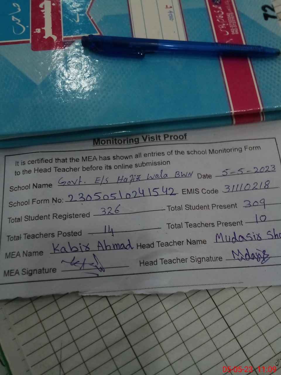 | EMIS Code: 31110218 | Name of School: GES HAFIZ WALA | |||