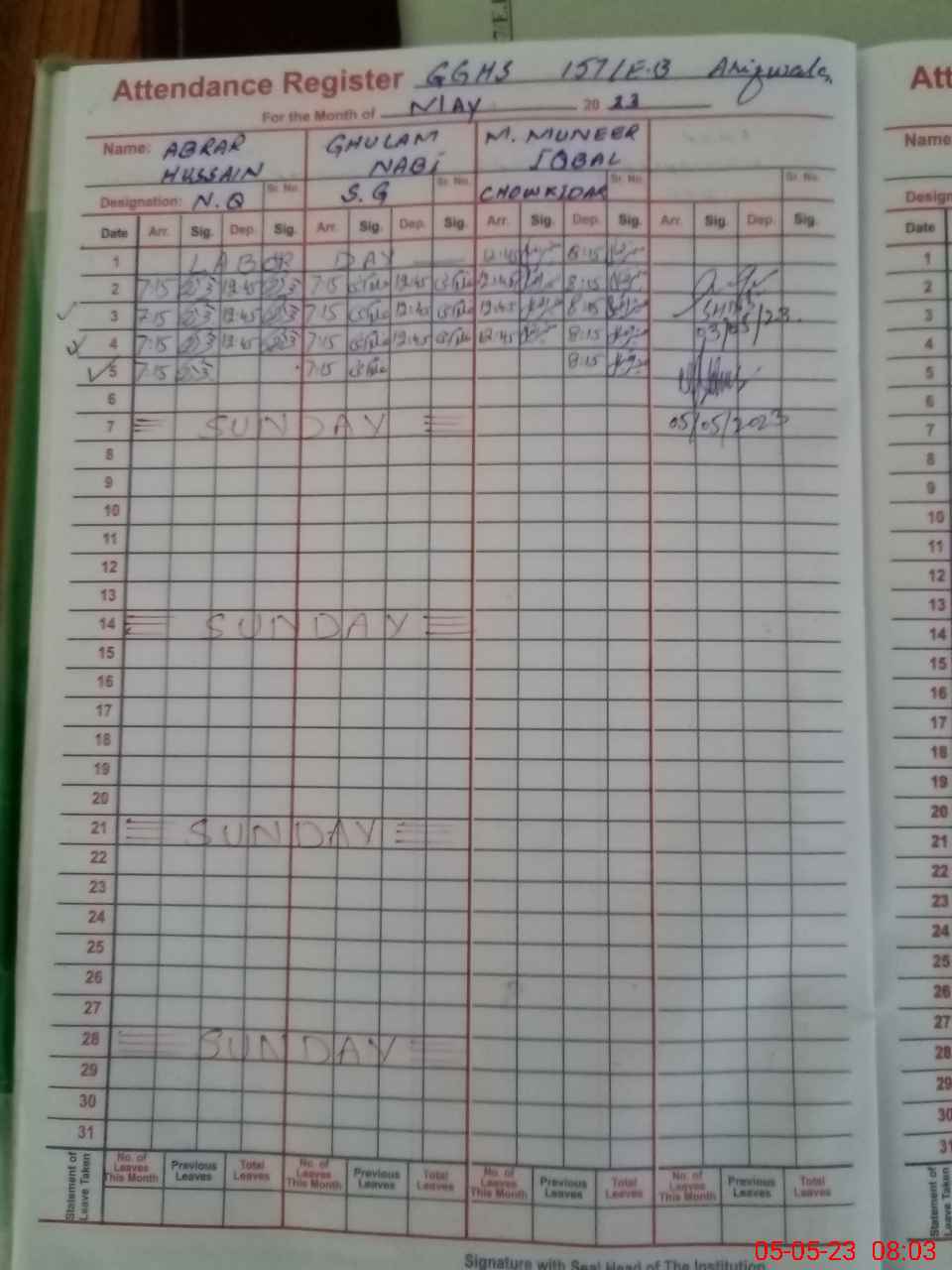 | 36**** | Sh**** Ak**** | Regular | 0 | 28 | 0 | 0 | 0 | 0 | 0 | 0 | 0 | Exam Duty | |