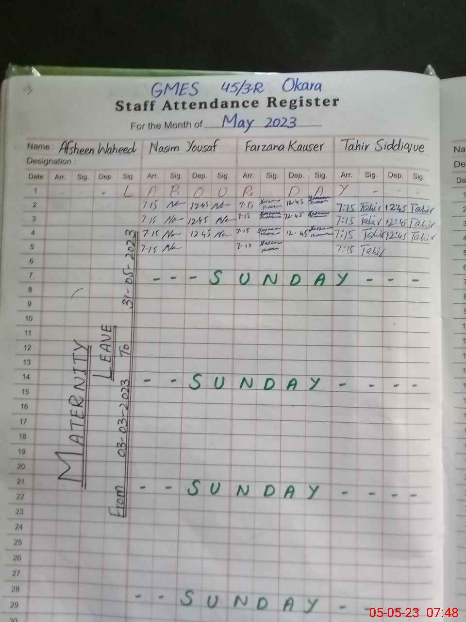 | 35**** | Sa**** Na**** | PST | Regular | 30 | 0 | 0 | 30 | 0 | 0 | 0 | 0 | 0 | Maternity |