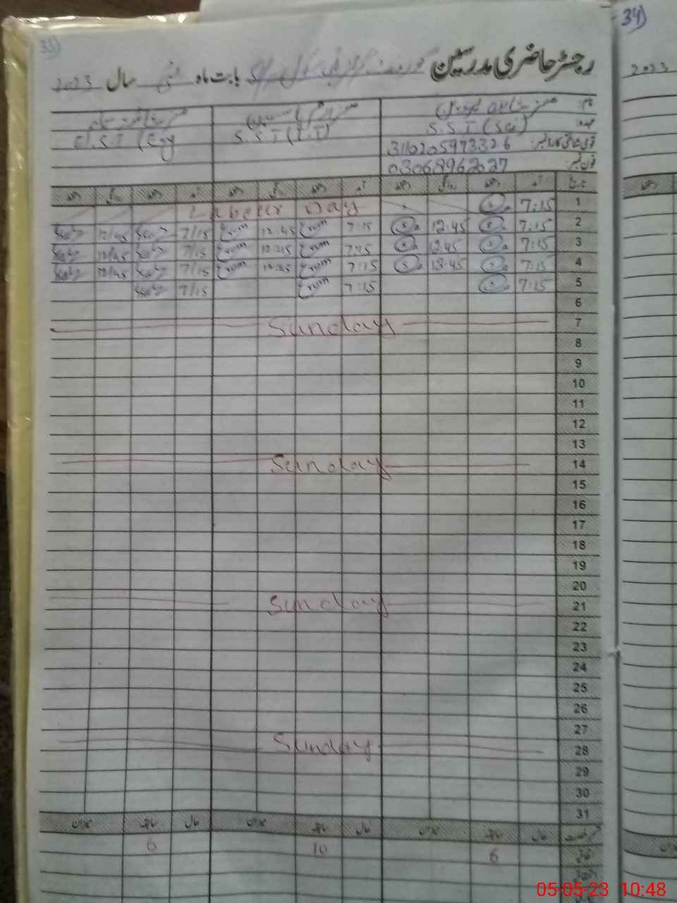| Name: Sh**** Pe**** Designation: (School Headmaster's/Headmistress's) SST Sci Phone/Cell Number: 03**** |