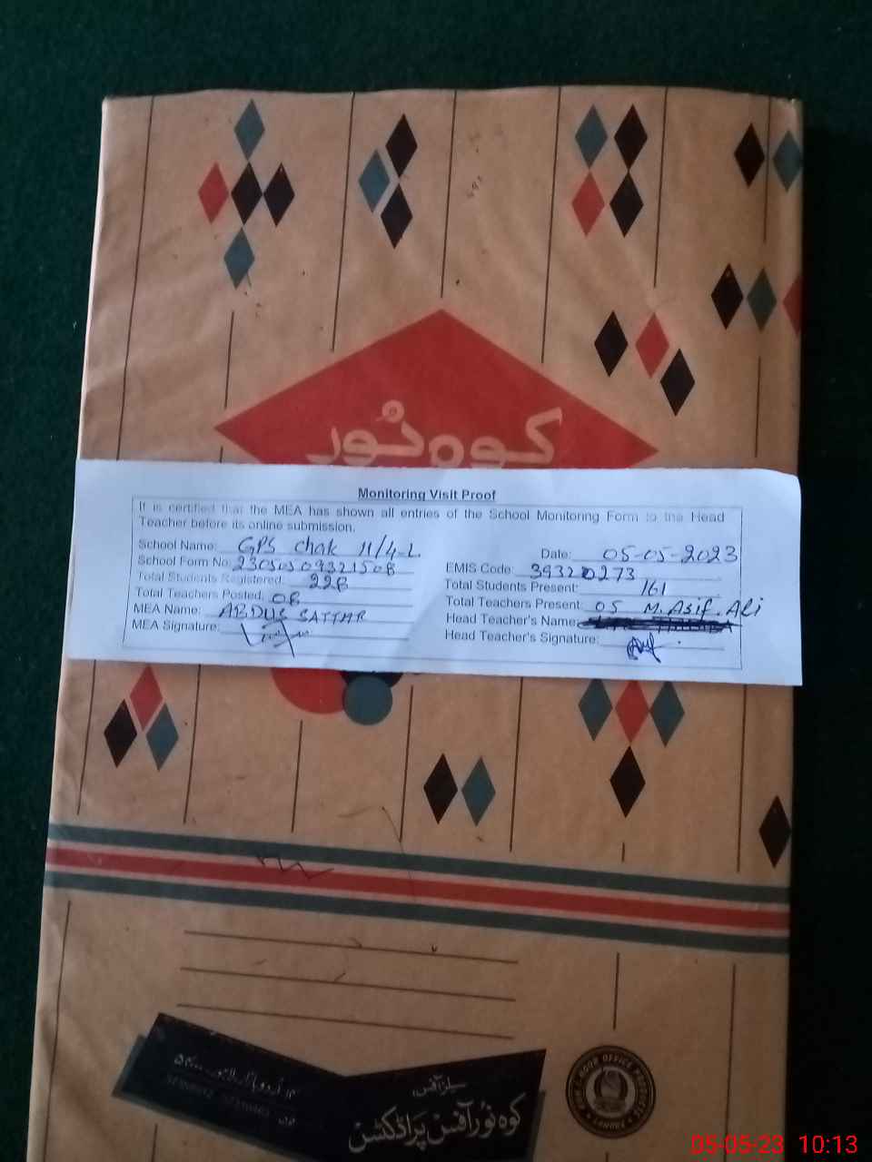 | Name: FI**** HU**** Designation: (School Headmaster's/Headmistress's) PST H MASTER Phone/Cell Number: 03**** |