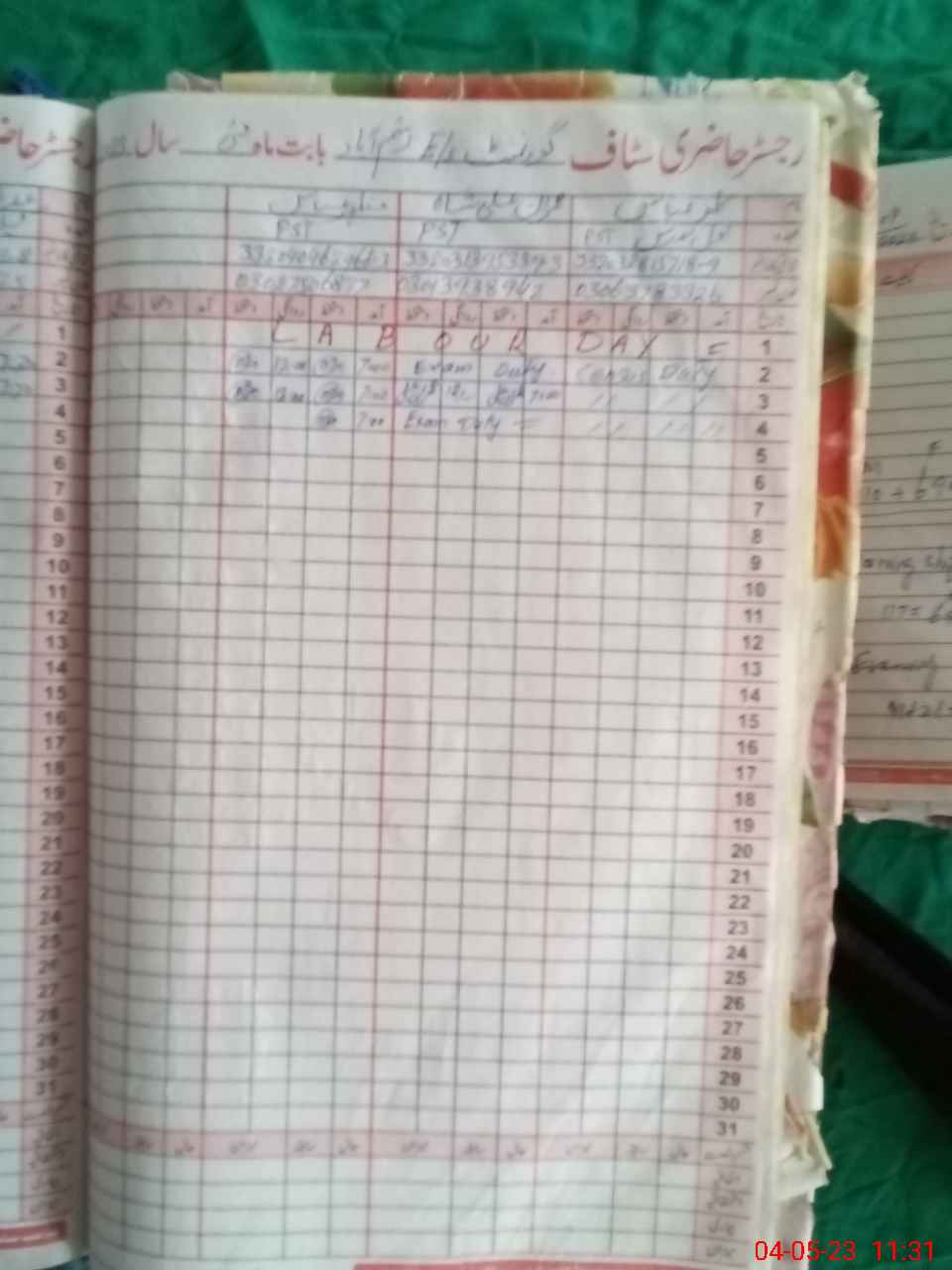 | 33**** | Im**** Al**** | PST | Regular | 0 | 0 | 0 | 0 | 0 | 0 | 0 | 0 | 0 | Exam Duty |