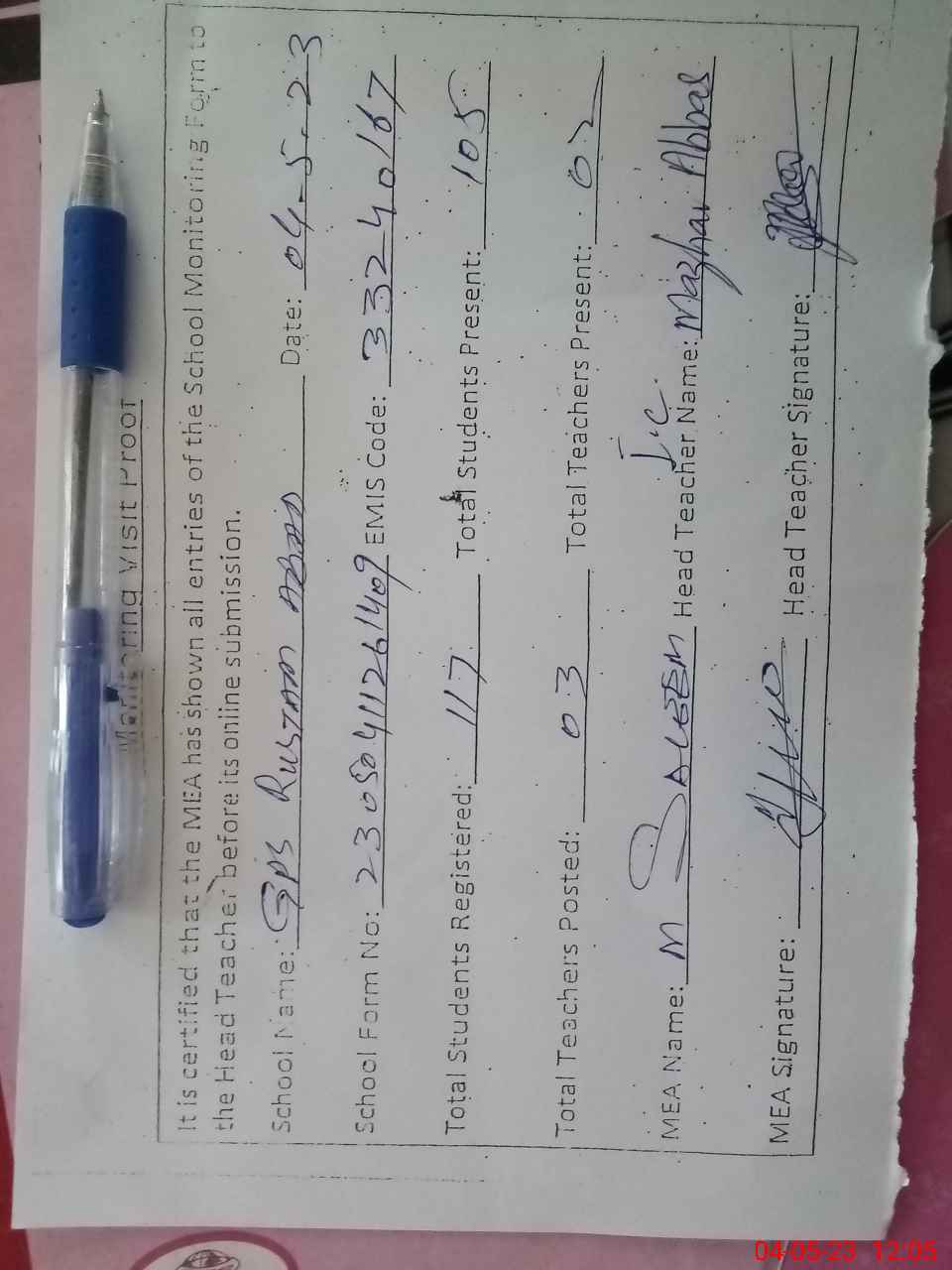 | EMIS Code: 33240167 | Name of School: GPS RUSTAM ABAD | |||