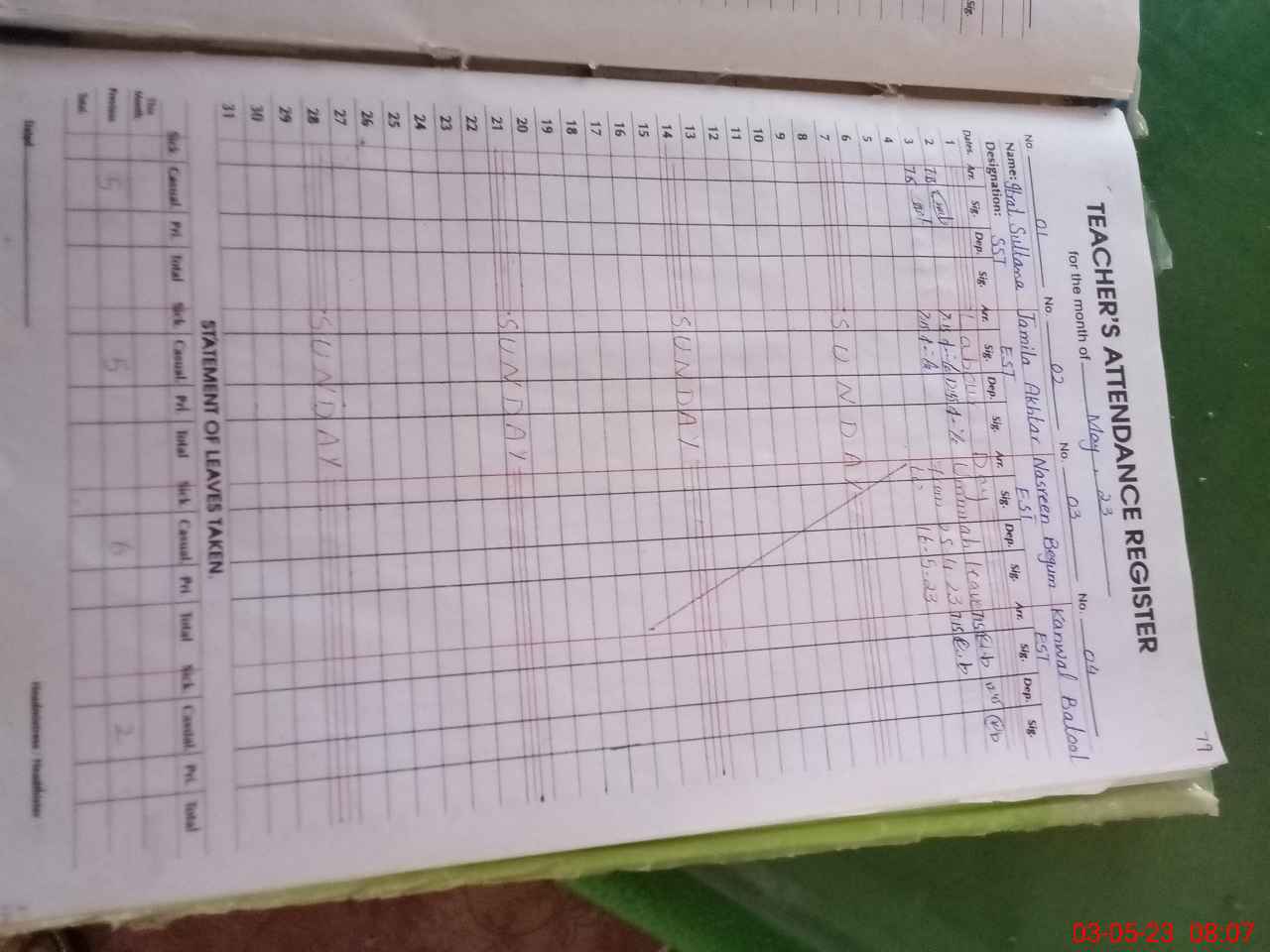 | 35**** | Fo**** Ka**** | Regular | 2 | 14 | 0 | 0 | 0 | 0 | 0 | 0 | 2 | Exam Duty | |
