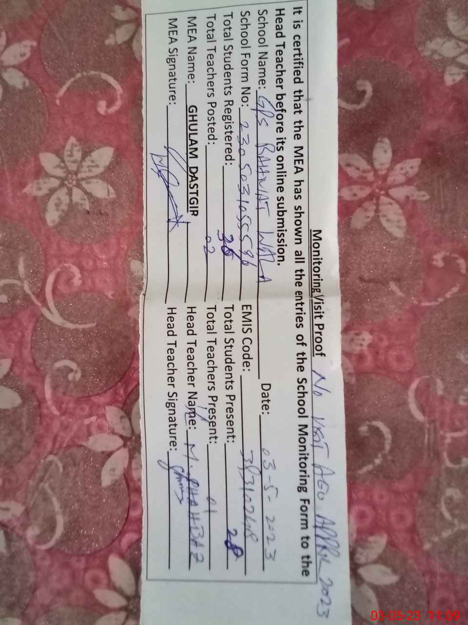 | EMIS Code: 39310248 | Name of School: GPS REHMAT WALA | |||