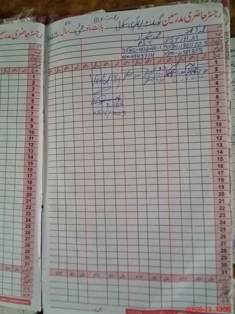 | Name: Mu**** As**** Designation: (School Headmaster's/Headmistress's) PST Phone/Cell Number: 03**** |