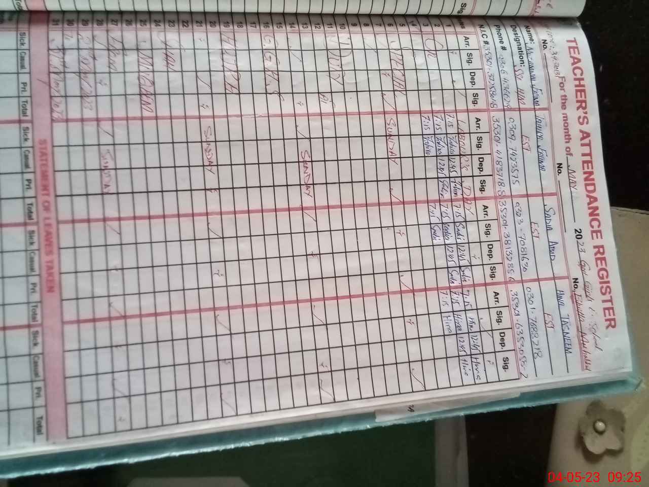 | Name: MU**** Fa**** Designation: (School Headmaster's/Headmistress's) SSE MATH Phone/Cell Number: 03**** |