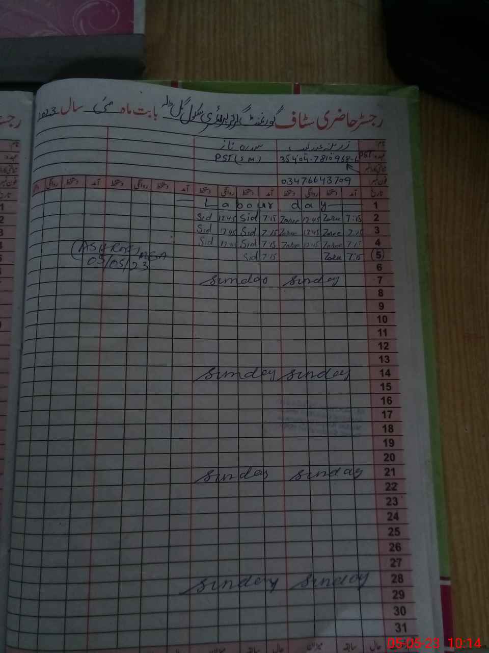 | CNIC | Full Name | Designation | R/C | Absence During Last Calender Month |