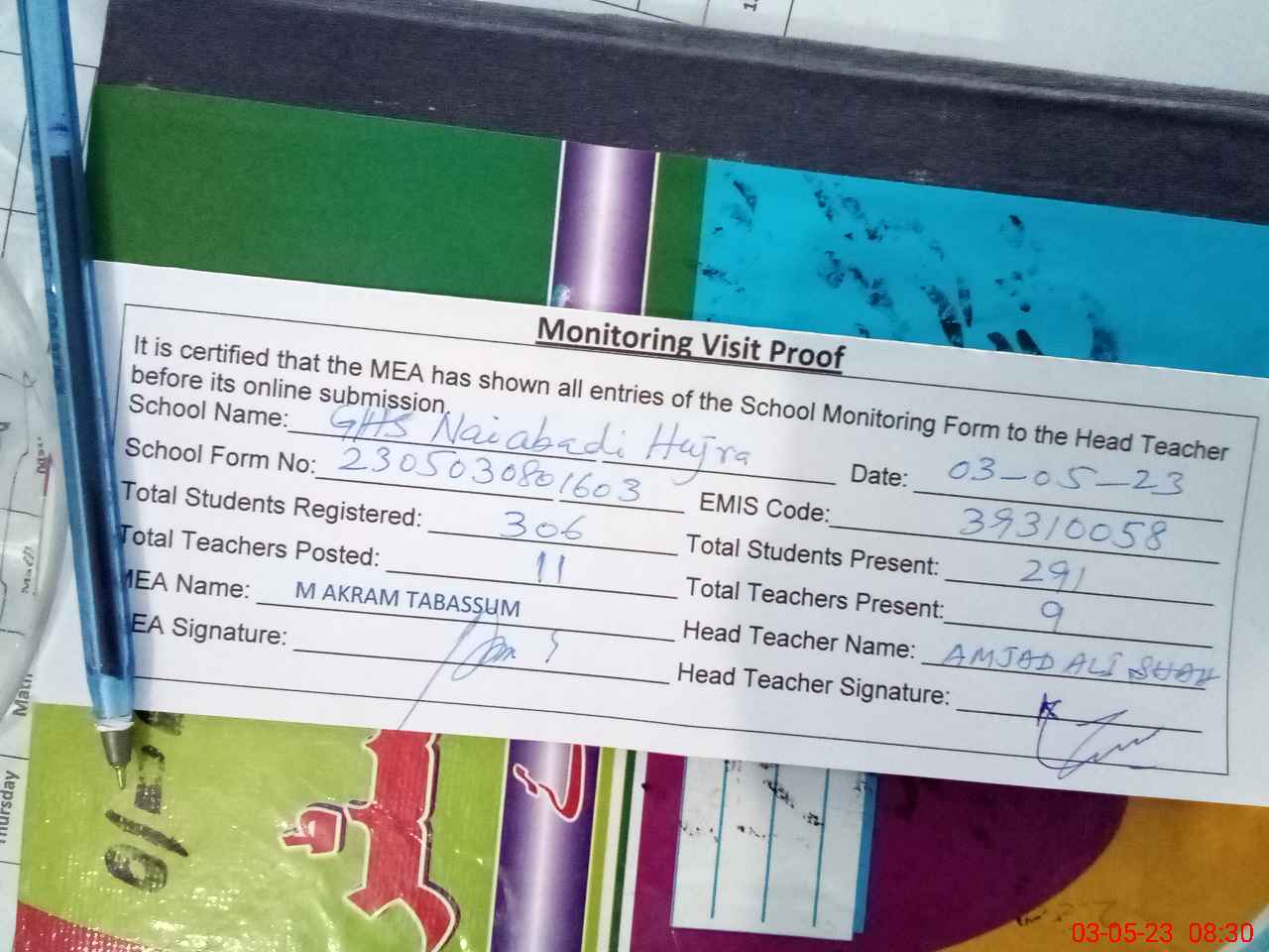 | EMIS Code: 39310058 | Name of School: GHS NAI ABADI HUJRA SHAH MUQEEM | |||