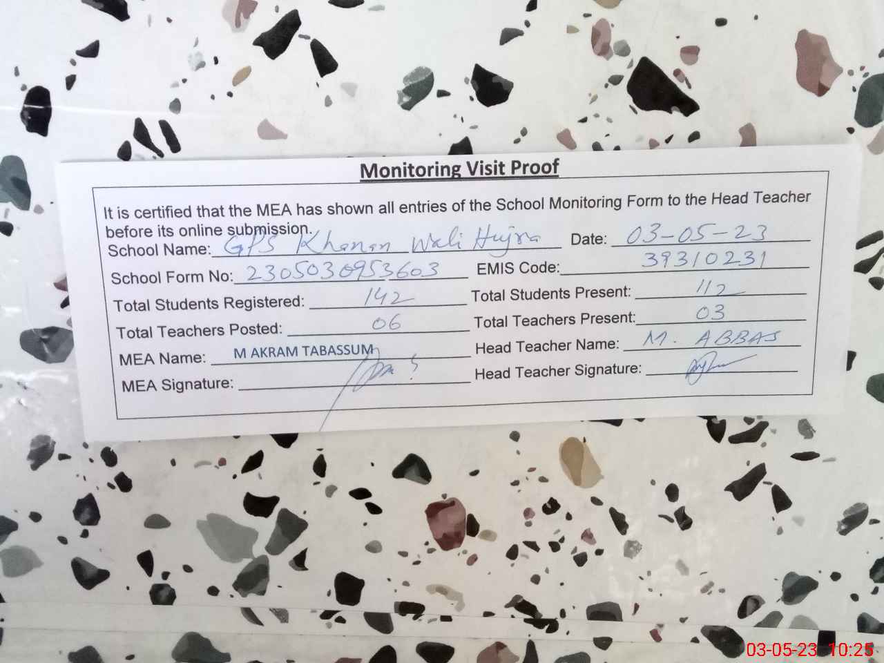 | EMIS Code: 39310231 | Name of School: GPS KHANAN WALI HUJRA | |||