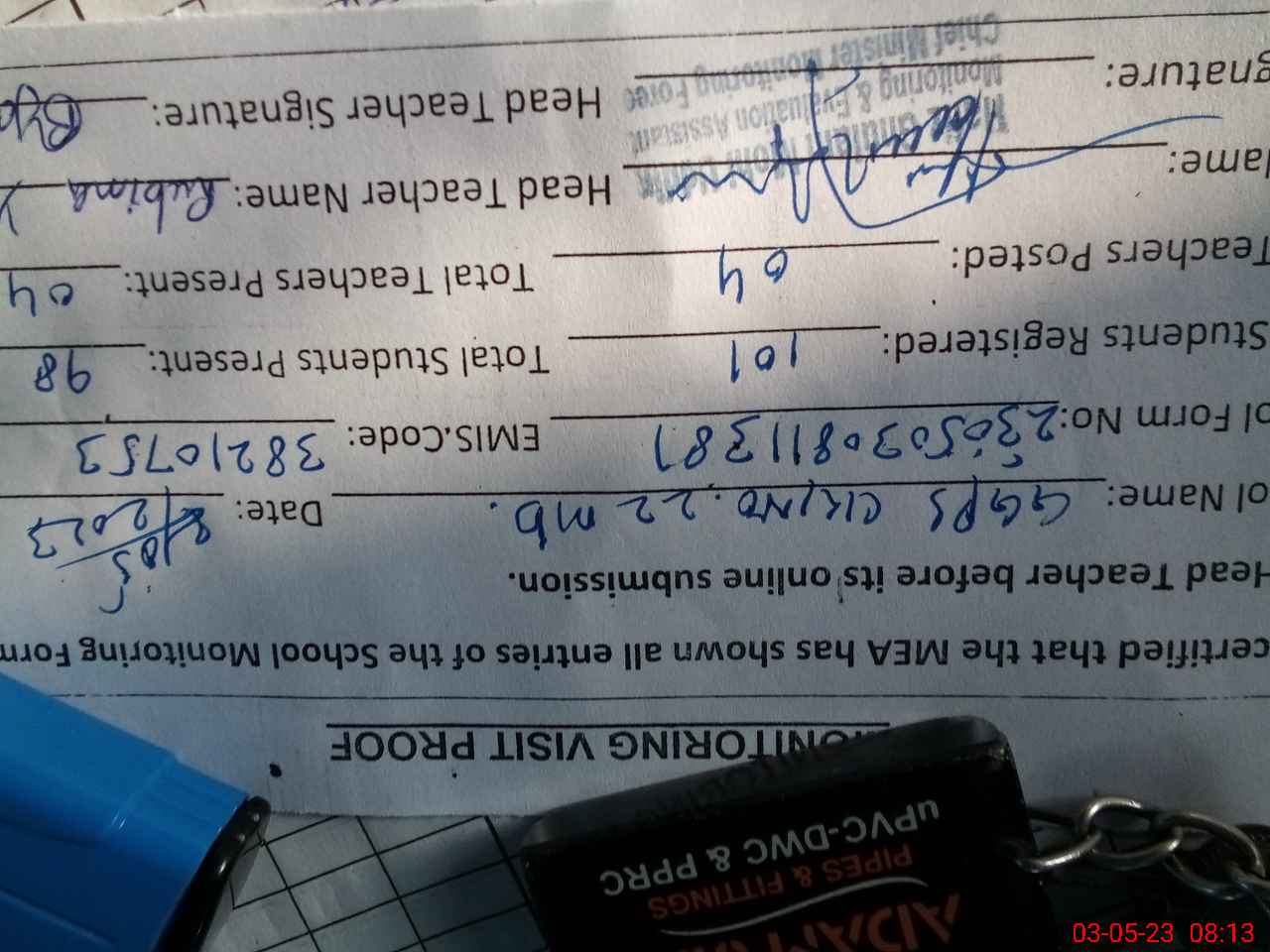 | Name: RU**** YA**** Designation: (School Headmaster's/Headmistress's) PST Phone/Cell Number: 03**** |