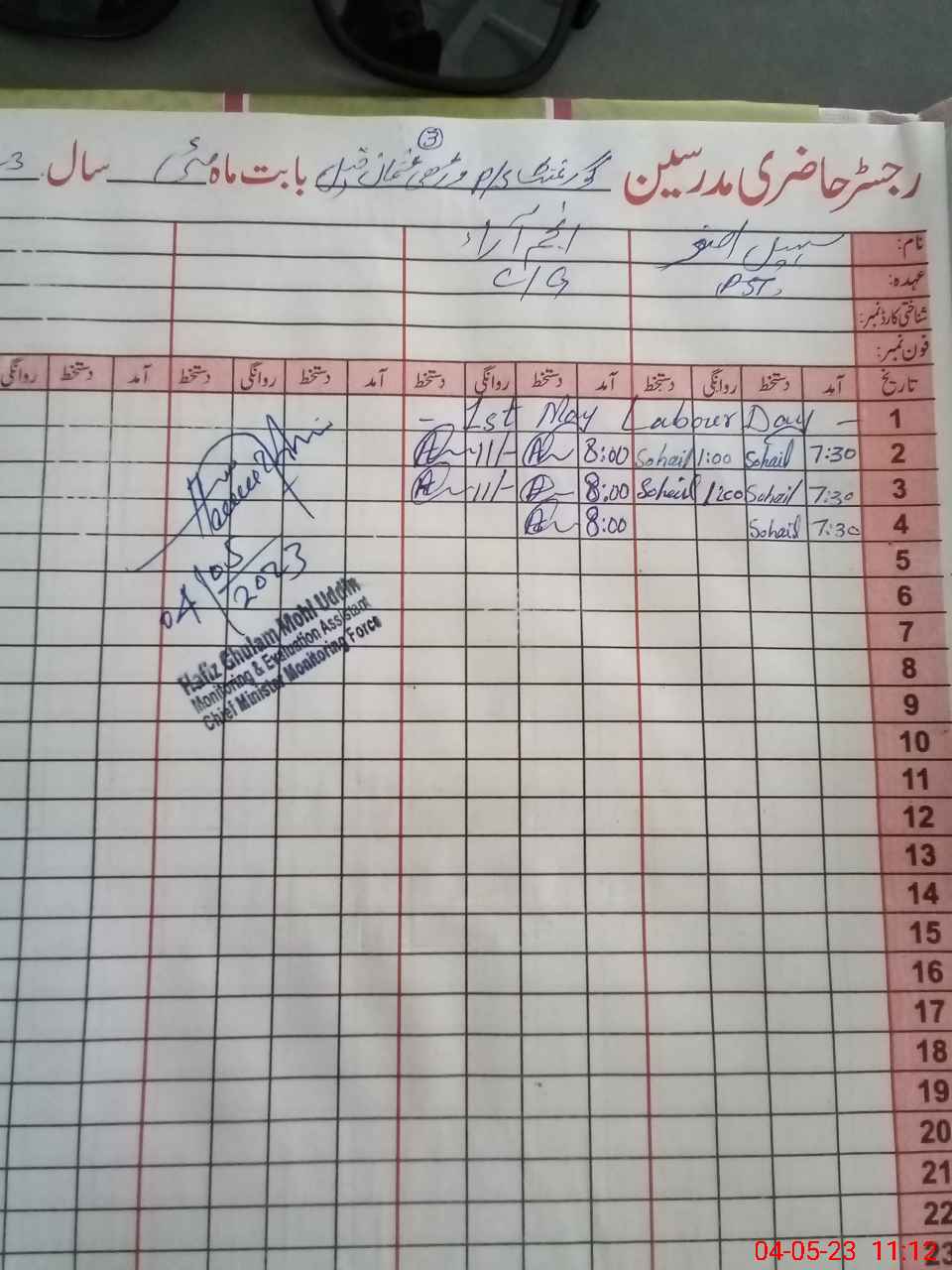 | Name: MU**** HA**** Designation: (School Headmaster's/Headmistress's) P ST Phone/Cell Number: 03**** |