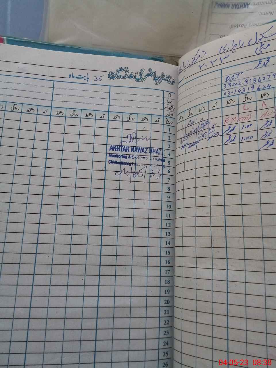 | Name: SH**** AB**** Designation: (School Headmaster's/Headmistress's) PST Phone/Cell Number: 03**** |
