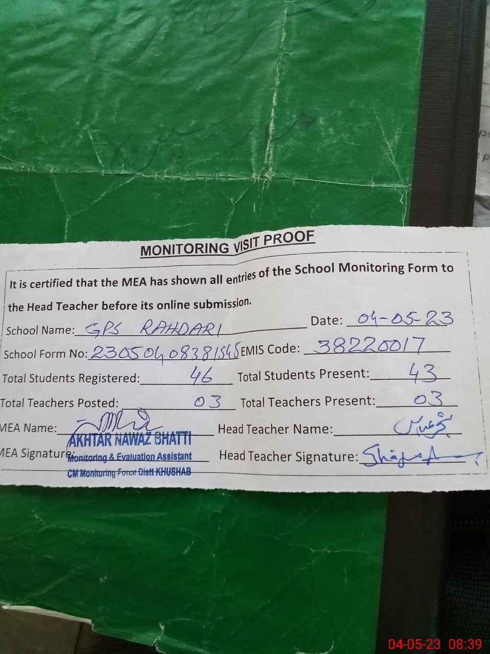 | EMIS Code: 38220017 | Name of School: GPS RAHDARI | |||